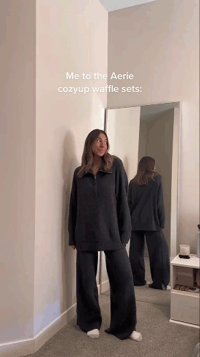 Half Zip Waffle Sweater Set